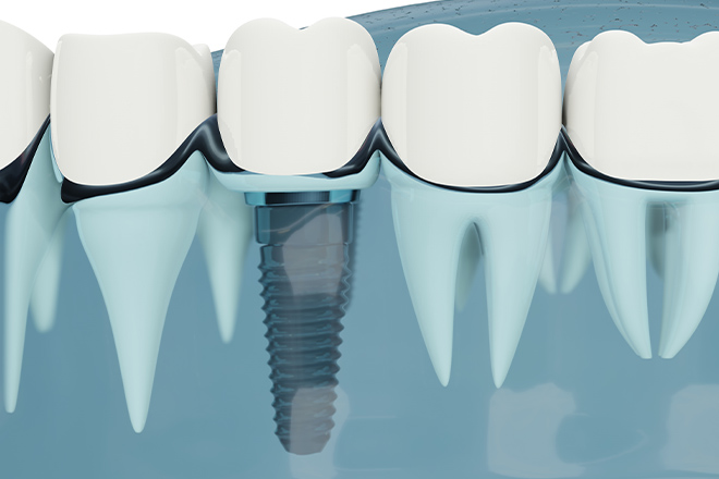 임시치아 장착 후 임플란트가 뼈에 유착되는 것을 기다립니다.