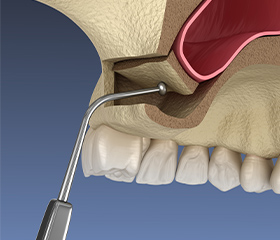 보다 안정적인 임플란트 식립을 위해 상악동 막을 들어올리는 상악동 거상술을 통해 임플란트를 식립합니다.